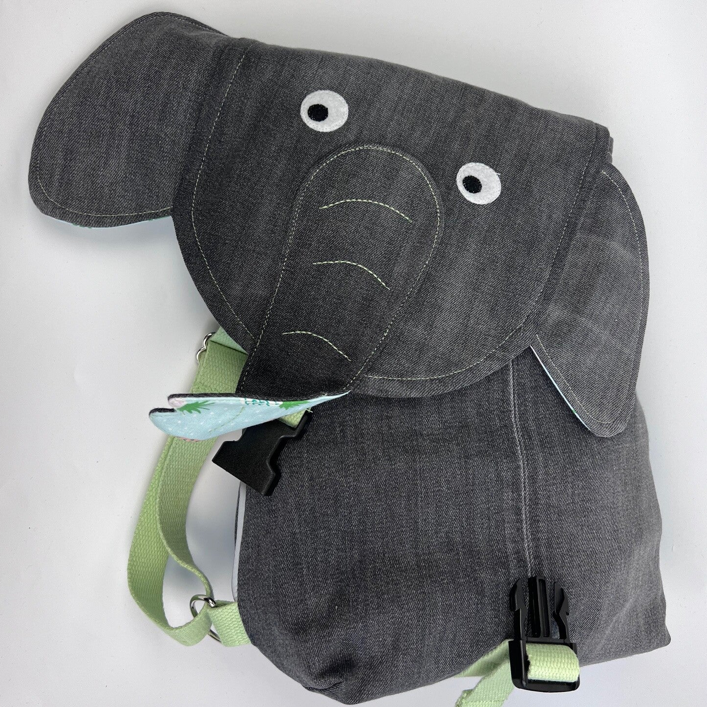 Hauptmaterial der olefanten Rucksäcke sind ausgediente Textilien (Außenmaterial und Futter). Für die Aufhänger und Tragegurte werden Baumwollband und Metallringe/-schnallen sowie eine Steckschnalle aus recyceltem Kunststoff verarbeitet. Die Augen bestehen aus Filz. An der Rucksackklappe ist zur Verstärkung Bügeleinlage aus Baumwolle verarbeitet. An den Seiten wurde ein Reflex-Paspelband zur besseren Sichtbarkeit im Dunkeln eingearbeitet. Der Rucksack hat verstellbare Gurte und wird mit einer Steckschnalle verschlossen, die sich sehr einfach von Kinderhänden öffnen und schließen lässt.
